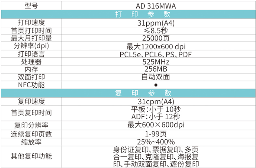 震旦打印機(jī) AD316MWA 家用辦公多功能A4黑白一體機(jī) 新款 黑色