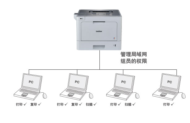 IT管理員可以通過此功能來賦予局域網(wǎng)內(nèi)的各個(gè)組員的權(quán)限,如進(jìn)行打印、復(fù)印、掃描、打印頁數(shù)的限制等。