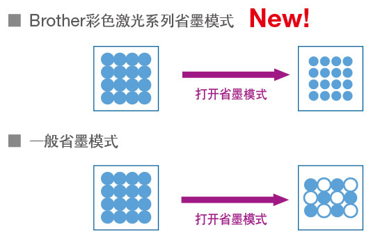 選擇Brother省墨模式可以節(jié)省墨粉消耗。兄弟彩色激光系列省墨模式是通過縮小墨點(diǎn)空間來完成的,墨點(diǎn)的數(shù)量沒有改變,即使使用了省墨模式也不會(huì)影響打印質(zhì)量。