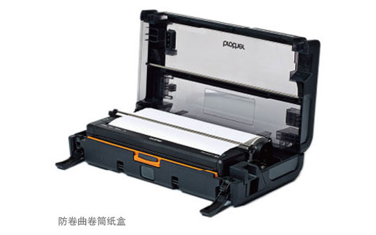 除固定尺寸的單頁紙外,還可打印卷筒紙。備有打印機(jī)上安裝的卷筒紙架以及可與打印機(jī)一起搬運、能直接打印的卷筒紙打印機(jī)盒。